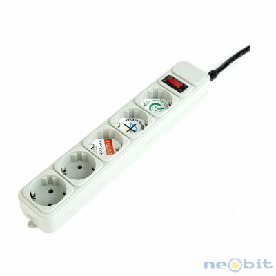 Električni razdelilec s prenapetostno zaščito 5X 220 V vtičnice, ˝Šuko˝ tip vtičnice, Dolžina kabla 1.8 m Maksimalna. tokovna konica 4500 A, Stikalo, Indikator, CE Certifikat, Bela barva, Možnost zidne montaže