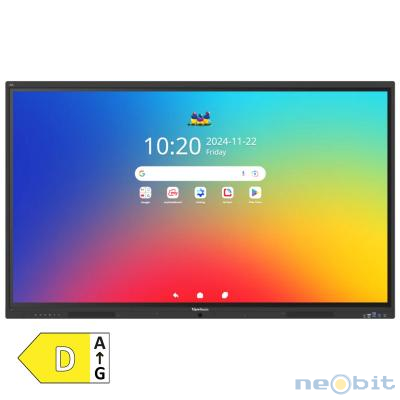 VIEWSONIC ViewBoard IFP6541-1-1C 165,1cm (65") UHD TFT Android EDLA 8xMIC zvočniki na dotik interaktivni monitor ViewSonic ViewBoard IFP6541-1-1C je napredni 65-palčni interaktivni zaslon nove generacije, zasnovan za sodobne učilnice, predstavitvene prostore in vse okolja, kjer sta pomembni sodelovanje in jasna komunikacija. Kot prvi interaktivni zaslon z Android 16 in EDLA certifikatom ponuja izjemno varnost, redne posodobitve ter neposreden dostop do aplikacij iz Google Play trgovine. Z zmogljivim osem-jedrnim procesorjem, 8 GB RAM-a in 128 GB prostora omogoča hitro, tekoče delovanje tudi pri zahtevnejših učnih ali predstavitvenih scenarijih. Napredna 64-točkovna tehnologija dotika z natančnim zaznavanjem in zavračanjem dlani zagotavlja naravno pisanje in risanje, funkcija Write Away pa omogoča takojšnje označevanje brez dodatnih nastavitev. Vgrajeni senzorji svetlobe in gibanja samodejno prilagajajo svetlost in optimizirajo porabo energije, kar podaljšuje življenjsko dobo zaslona in zmanjšuje stroške delovanja. Dvojna USB-C priključka z do 100 W napajanja omogočata enostavno povezovanje in polnjenje naprav z enim kablom. Za vrhunsko zvočno izkušnjo poskrbi 2.1-kanalni zvočni sistem s sprednjima 20 W zvočnikoma in 15 W nizkotoncem, medtem ko 8 kanalni mikrofon z naprednim filtriranjem hrupa zagotavlja jasno zajemanje govora tudi v večjih prostorih. ViewBoard IFP6541-1-1C je popolnoma združljiv z ViewSonicovim ekosistemom izobraževalnih orodij, kot so myViewBoard, AirSync za brezžično deljenje zaslona ter Manager za centralizirano upravljanje naprav. To ga postavlja med najbolj celovite in prilagodljive interaktivne zaslone na trgu.